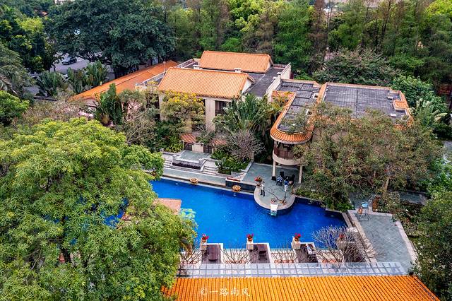 中山温泉宾馆由已故香港企业家霍英东、何鸿燊先生等人投资兴建,由岭南派建筑大师莫伯治先生设计,内部融合了岭南建筑、皇家建筑、中国园林和西方度假村风格,整个氛围清新、古典又洋气,充满诗情画意。