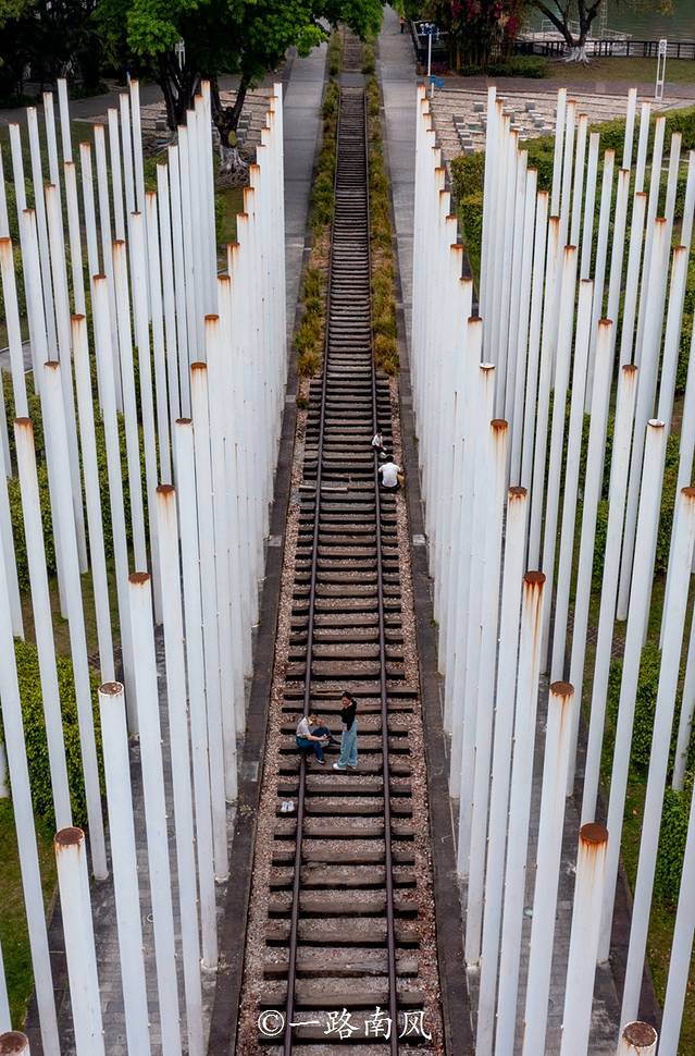 岐江公园没有围墙,从北门进来,首先会看到长长的铁轨,这不是长途火车的轨道,而是粤中造船厂遗留下的轨道,是20世纪50年代的产物,当年用来调动物资,看到它不禁让人想到那段辉煌的工业史。