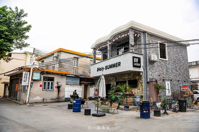 离开香山书房回到村口,木棉树旁边还有另一家咖啡馆,名字叫SY,走的是乡村文艺路线,路牌、室内、室外,休闲吧都是打卡地,“想你的风还是吹到了三乡” 一类口号很容易打动人。