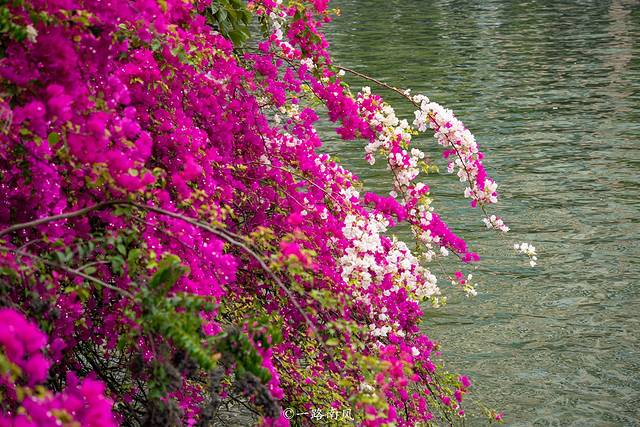 我们前来打卡的时候天气并不是很好,但满眼的绿色和清新的空气让人感到心旷神怡,江边怒放的玫红色和粉红色三角梅为这个春天增添了鲜活艳丽的色彩,待到临近离开的时候,天气稍微好转,公园内外的景色更加明艳。