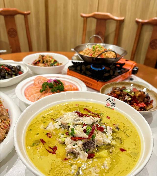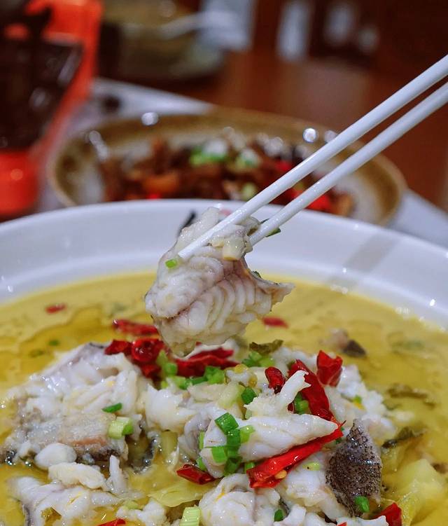 酸菜鱼!现场捞的石斑鱼做的,新鲜的鱼肉真的太好吃了!关键是一大盛才650铢,曼谷最便宜的活鱼酸菜鱼了