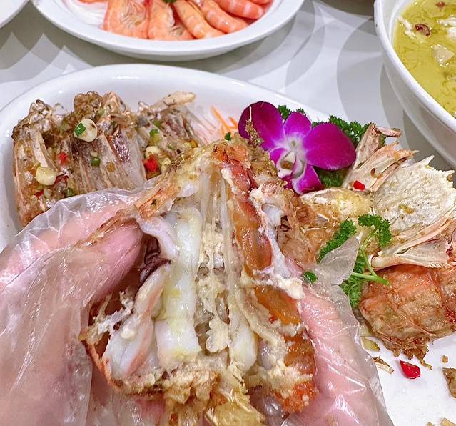 价格是 2680铢,每一只都有手臂那么粗!关键是活的虾吃起来口感好太多了!虾肉超级厚实饱满!