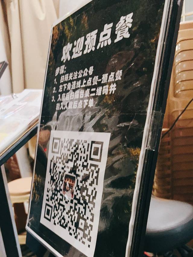 民信老铺,去吧,二维码点餐,一堆小圆桌,双皮奶特别甜,但是味道很香