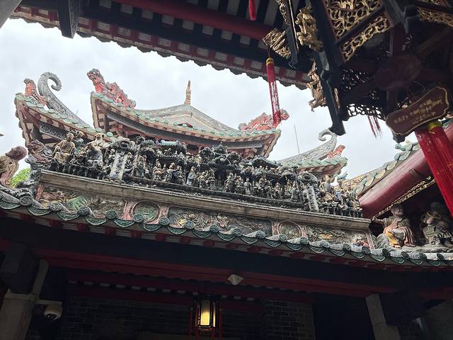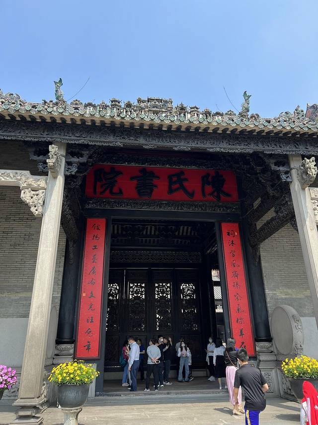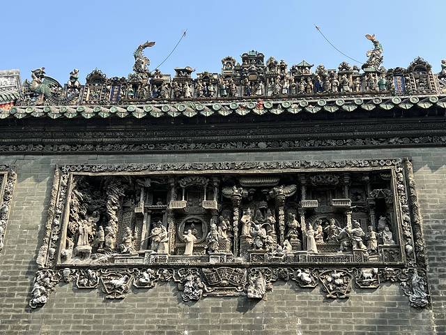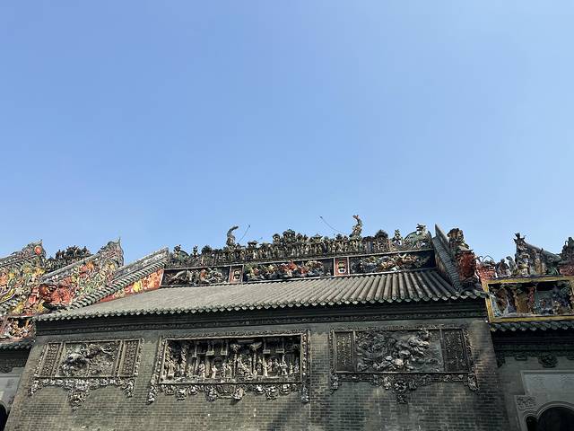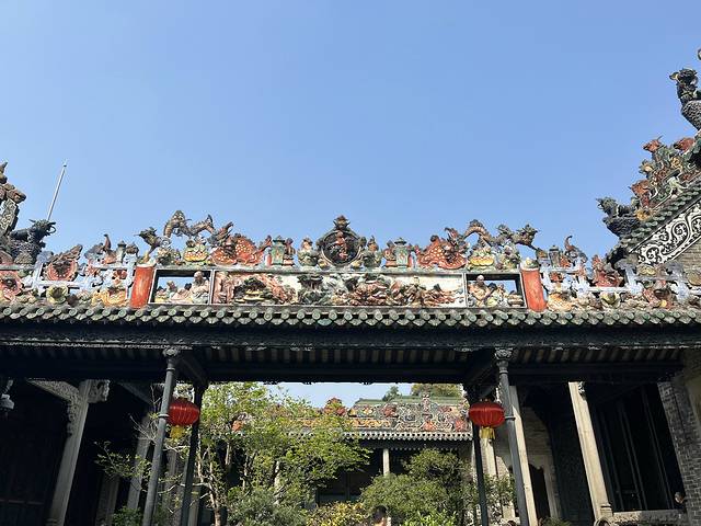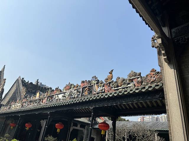吃完饭去陈家祠,陈家祠 是个陈氏祠堂,牌匾已不再,但留下来了当时的建筑风格,泥塑等建筑技艺充斥其间,彩绘玻璃熠熠生辉,里面陈列展览各种艺术品及民间工艺,是非常值得好好赏析的