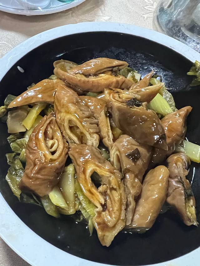 生鱼片 应该不是现切的,已经有些干了,但是上菜快,鱼肉因为失水分了缺了鲜甜的味道,只能加调味了,花生油(老广特别爱的调料,确实让鱼肉更加柔滑)、生抽,再加上各种丝,一丢丢芝麻,香(不愧是搭配好的配料,本来不吃姜先把姜丝都夹出去了,后来发现姜丝不是辣味而是腌渍过的,放进去,瞬问鱼肉又多了一层口感)