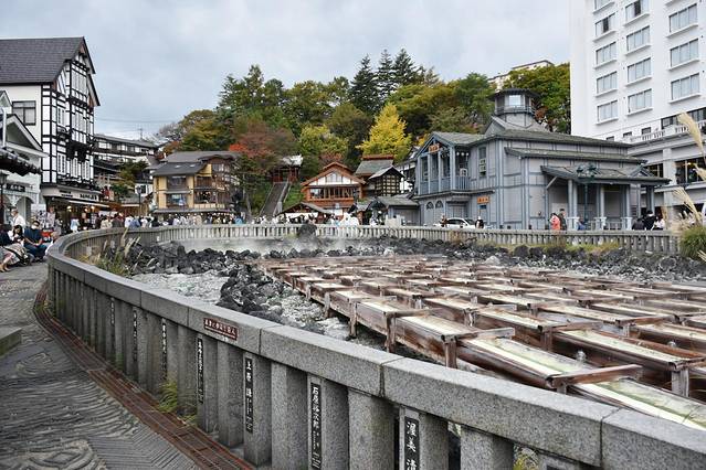 草津温泉最具特色的便是位于温泉街中心的汤畑,这一大型木质装置非常难得一见,用于给草津温泉的涌泉降温并沉淀杂质,以确保草津温泉温度更宜人,水质更细腻。这样壮观的场景,一定要亲眼来看一看。