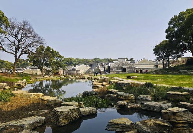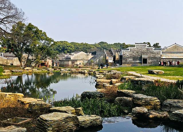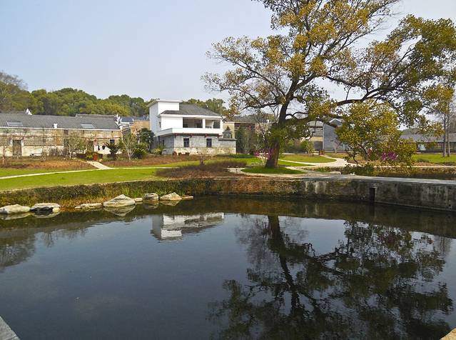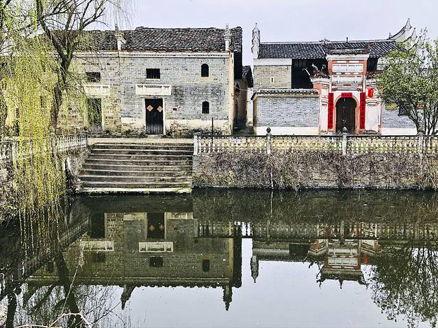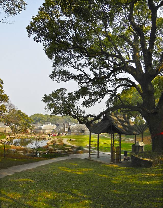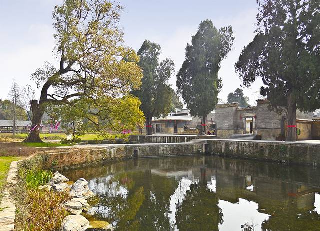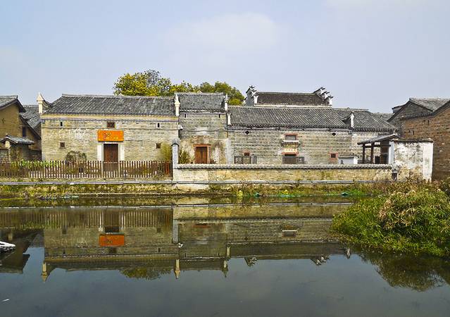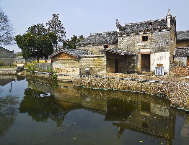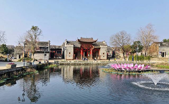 上午10:00多我便开始了今天第二个古村的游览,村口是一座大祠堂,绕过它先来到池塘边上,坐下喝点水吃个水果,背包少点重量。