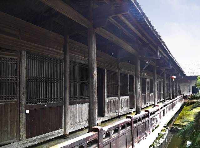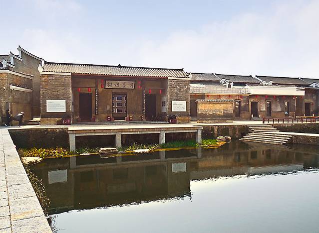 从一个主要祠堂穿过去,祠堂里面布置也非常到位,有摄影装饰,有小型休息区,我还惬意地坐下整理了书包。从正门出来就见到了刚才照片中那7个池塘,及池塘后一溜的古祠堂门脸,经典的古村画面,又有着“七星伴月”的独特之美。也很想找个角度拍个全景,可没有角度,加上自已手里的也不是单反,只能看看欣赏了。