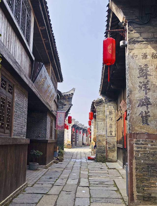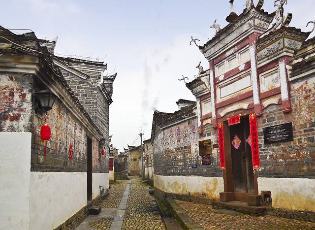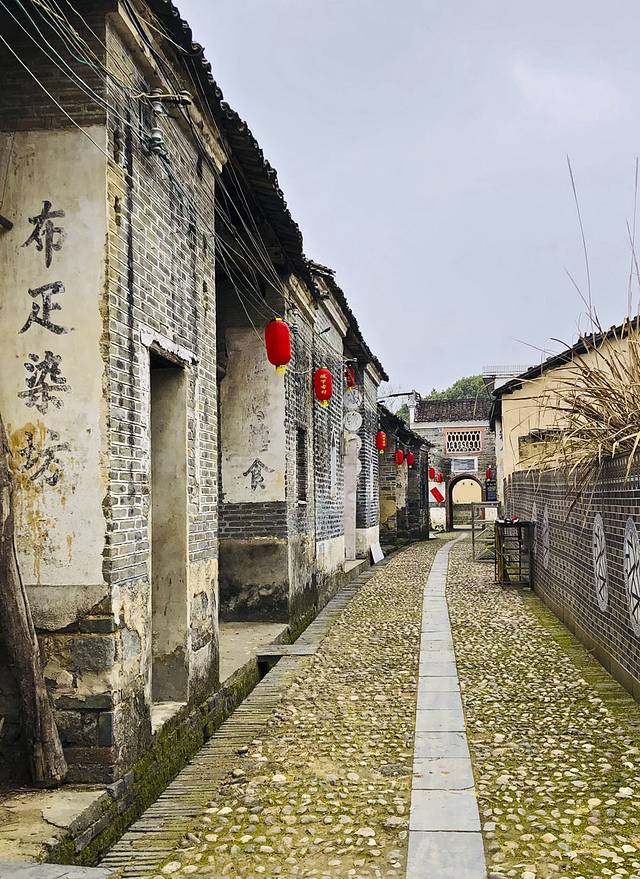 后半段的匡家古街曾是一条古老的驿道,街上古民居、古商铺多,一个个墙跺上的老招牌还清晰醒目,两侧多为明清时期建筑。这里还是红色标语的大海洋。