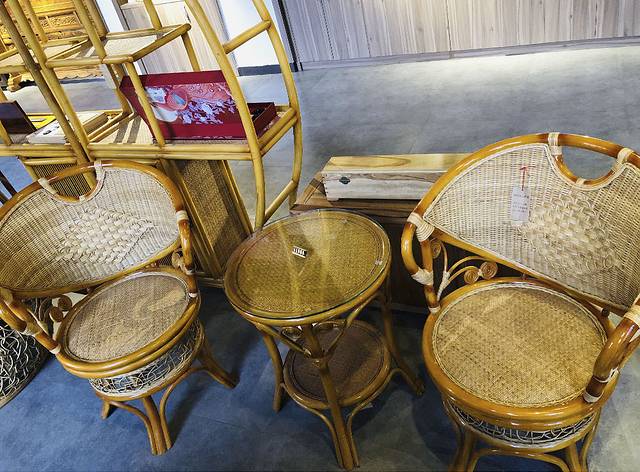买了杯奶茶,无聊地在江边坐会,之后信步进到一家艺术品小店,哎,认真看一下,发现里面的东西还不错,甚至很精致。有手工打造的竹制家具,那套可转动的椅子很合我心意。最后又被吉州窑的产品吸引去了目光,小碗的黑色底上有一只桑叶,老板过来详细介绍了这种产品的制作过程,墙上的视频中也在放映着这种碗的烧制工艺。介绍这是无意中落进一片桑叶烧出来的,发现很美,从此便成了吉州窑的特色产品。真的有点被打动了,全是茶具,想找个咖啡杯,的一套且不是那种带桑叶的图案,最后买了个单独的小碗当纪念。