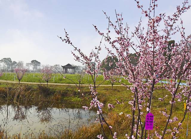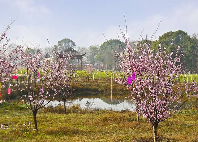 然后在火车站乘301路,去计划中的桃花岛景区,原本的意思是漫长的冬天来到南方,早一点看看花儿。门票加上岛的船票40,65以上老人半价。来得太早景区中没几个人,空荡荡的,瞎走吧,不一会儿就见到前面有一片小桃花林,树很小,但花儿开得正好,还是很可爱滴。旁边还有大片没发芽的花树,再晚些时间来会更漂亮。