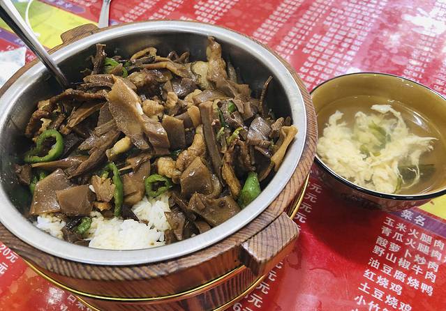 休息会儿,出去吃了个烟笋回锅肉木桶饭,嘿,吉安的烟笋实在是太好吃了!