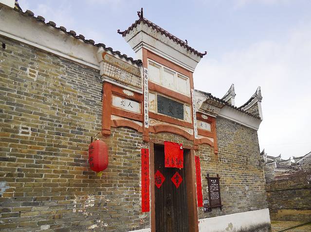 向前走就见到了村中主要古建筑之一的文忠公祠,始建于北宋末年,历经元明清各代多次修葺的这座祠宇,30多米长的甬道,上饰宝顶的门坊,进而还有天井、回廊、串楼、殿堂,只是不开门。但这个院子色彩艳丽的门楣就很漂亮了。