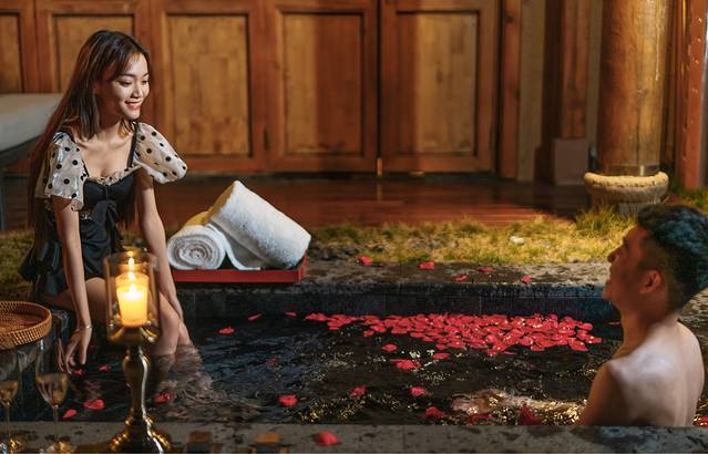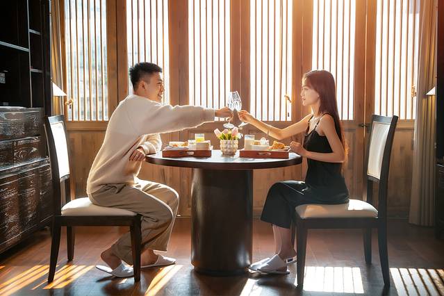 晚上酒店餐厅为我们准备了精致的双人晚餐,品尝了当地美食,享受了美好的环境和服务。晚上回到房间还有小惊喜,在庭院泡池早已摆置好了花瓣和香薰蜡烛,汩汩热气升腾,倒上一杯香槟,听一听虫鸣,同时欣赏着夜色中的官塘,非常美丽。