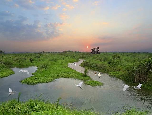 吃完鲜美的湖鲜,再逛一逛湿地风光。春来水暖,正是游湖泛舟的好时节,乘一叶小舟,游览泛溪问水景区,匿影树下,看岸上各色交织的花,映着春湖,美景交错。看湖面时而被微风吹皱湖水,时而被飞鸟惊起涟漪,游湖的意趣大概就是如此,或行或停,都是风景。