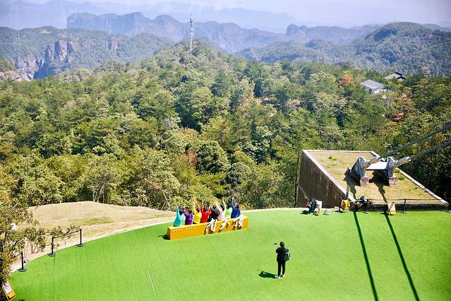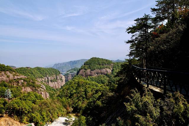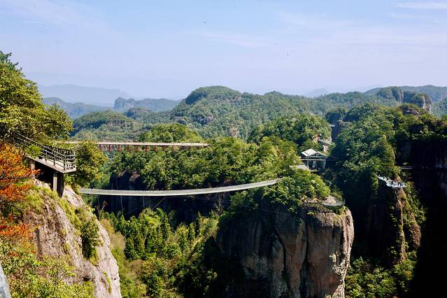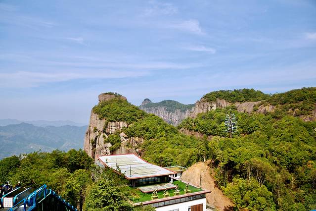 乘坐索道到山腰,然后乘坐电梯直达山顶,讲真的我还是第一次爬山坐电梯,真的很有趣。首先到南天顶,这里有超美的玻璃观景平台,拍照绝美,从南天顶观赏台可以看到观音峰,仙雾缭绕,难怪叫神仙居,在南天顶这里看神仙居可不就是神仙般的存在。