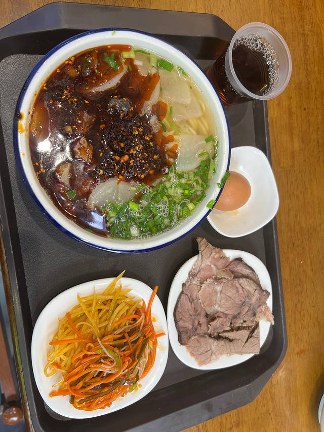 牛肉面套餐,要的二细。清汤牛肉面8/9块钱一份,肉单独购买一份8/9块钱。开在居民楼下的牛肉面都正宗(兰州本地人说的)。