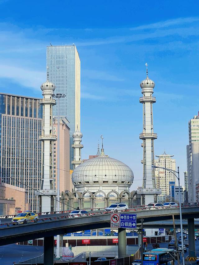清真寺,17:00以前清真寺可以进去参观,请注意尊重文化,礼貌。拍照位于华润万家(临夏路店)二楼观景台。