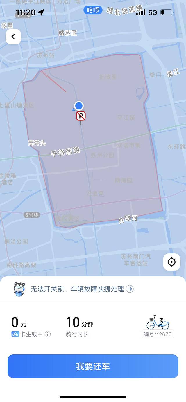 比较没想到的是,哈罗单车,这么大片区域都禁止还车,上图是4*5km的禁停区。不过实在太累的,即便顶着10元的禁停调度费,也要选择骑行。