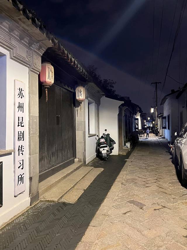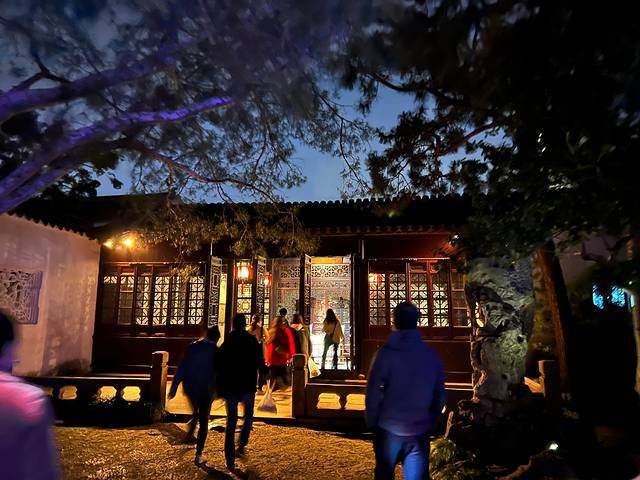 小巷的前面就是网师园入口,由于这里没其他景点,这时进来的都是夜游游客。