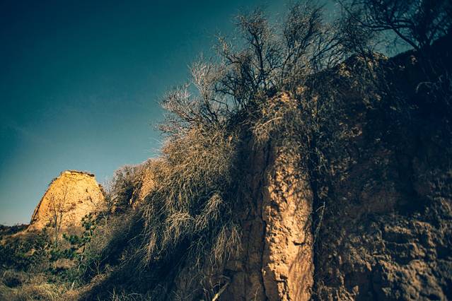 相较于难觅古迹的双山堡,三台界更具长城的传统特点——雄伟、壮观、沧桑、破败。这里的明长城遗址,不够雄奇秀美,却独有塞上悲壮的苍凉美。越过杂草丛生的土地,用手指摩挲过斑驳沧桑的城墙,用眼睛看向屹立于山上的烽火台时,仿若陪宏伟的长城重新回到了过往的历史时刻,见证了数场农耕与游牧民族之间的战争。