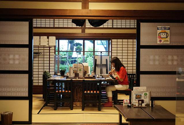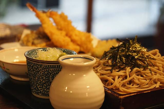 在山形MARUGOTO馆红之藏里的荞麦面专门店,也可以吃到芋煮啊,山形牛肉什么的。来这里一是靠近花笠节会场,再主要是想拍拍照,毕竟它曾经是红花商人的仓库建筑,古香古色很有韵味。