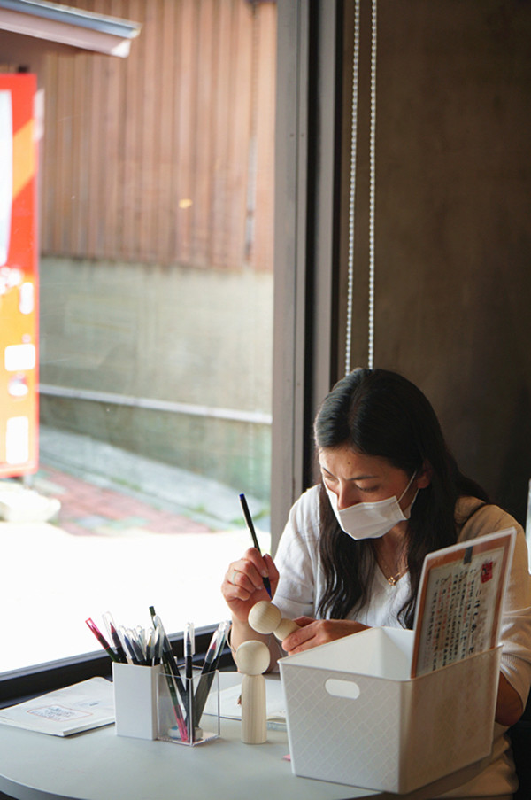 是很有设计感的商品集合店。主要是温泉相关的东西,也有服装。在这里还可以体验做木偶人和温泉街探险,向店员咨询之后,我们就被带到旁边安静的小屋中体验画这种山形特色的木偶人啦。