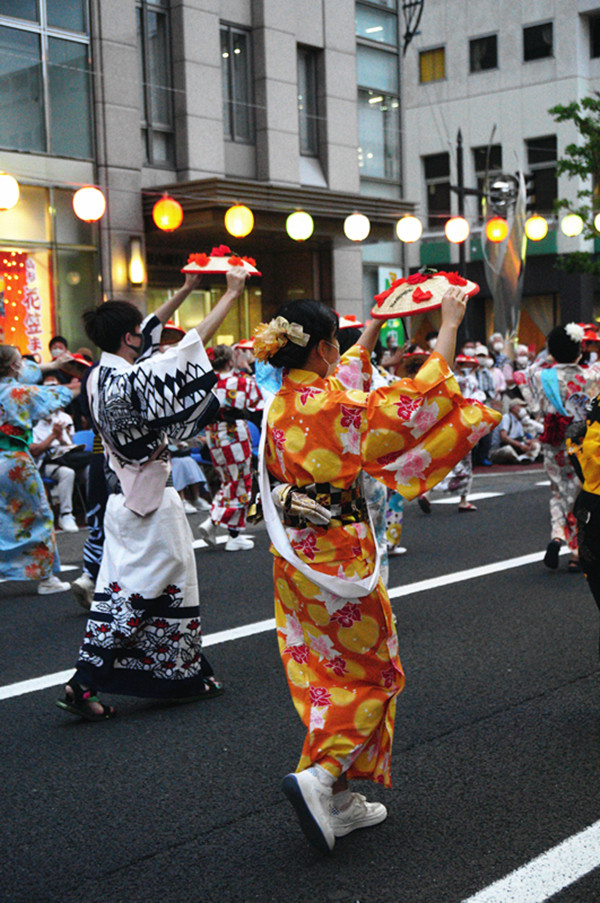 因为疫情,花笠节停办了两年,今年终于又可以现场感受这份精彩。只不过为了防疫,游客也可以参与的“轮舞”环节还是没有恢复,不过看别人跳就够了!