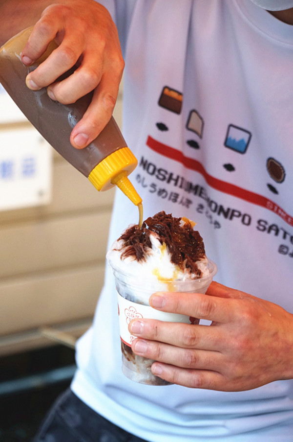 山形的老牌点心店“佐藤屋”也在这里出摊了,出售他们当家的“梅子味”刨冰。咋说呢,口味很优雅很日本,跟那种淋了五颜六色糖浆的口感是绝对不一样的。很推荐。
