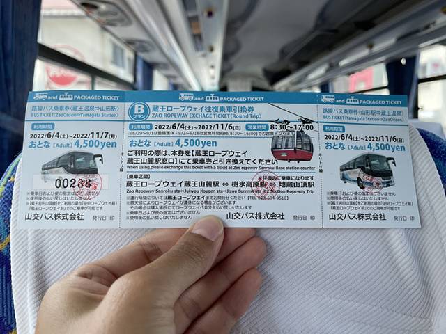 售票员看我们楞在自动售票机旁边,就唤我们去了人工窗口,很耐心的推荐了“巴士票+藏王缆车票”的套票,这服务要竖大拇指了。