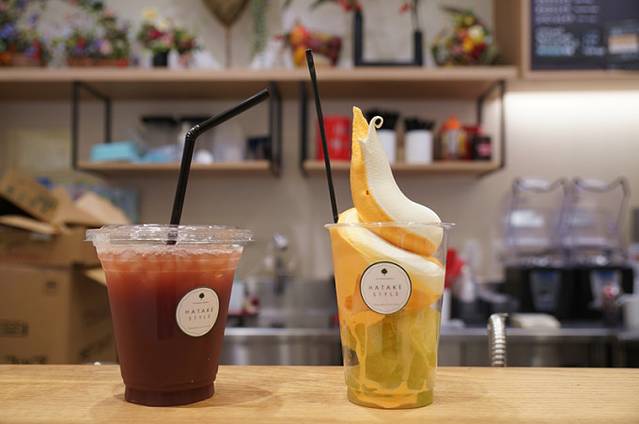 “HATAKE”这家店在山形站里边的S-PAL内,一大早货品都还没有摆齐,来吃芭菲的人果真不多…哈密瓜味走一个,冰咖啡也来一个,很是惬意。