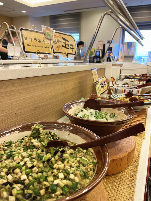 Richmond酒店的早餐种类丰富,很多山形当地特色的东西,比如这个叫做“DASHI”的,黏糊糊,类似于小咸菜,适合拌饭。居然还有山形的魔芋团子,我放点芥末一起来吃。