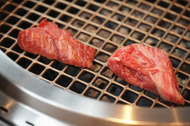 午餐有3300日元的烤肉套餐。包含五花、牛舌、牛肠、米诺(牛的第一胃),还有色拉、米饭、味噌汤、泡菜、甜品和一杯饮料(可选)。怎么说呢,想放开肚子吃肉肯定不够,但是作为午饭是很完美的。