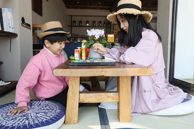 民宿是懂小朋友的,积木、轨道乐高、弹珠、飞行棋,成功锁定像元宝这样的小朋友,乐而忘返。