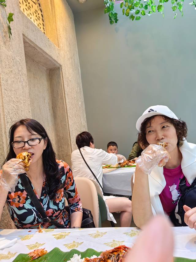 当地人都用右手吃饭,左手擦屁股,想到我们不是当地人,发了手套。本来是四人份,因为我们三人上卫生间,只倒了很少一点菜饭,为了补偿,后来打包带走了2人份的菜!