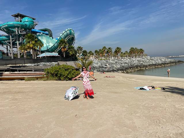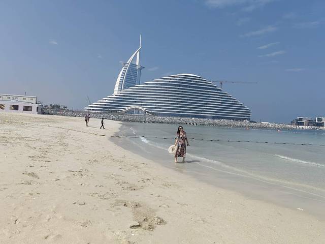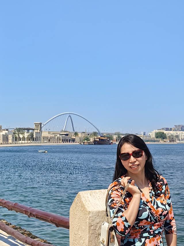 迪拜河的海湾,波斯湾内海,外地人可以裸泳的地方,旁边是一些当地的特色建筑和水世界。看看照片里有裸晒的吗?