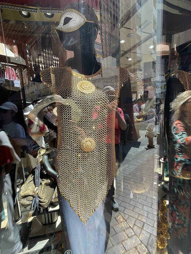 黄金衣服,黄金市场令人震撼,就像国内的菜市场一样,不大的门面里面摆满了各式黄金饰品,项链用钢管穿起像挂面一样。估计国内一个很大的金店加起来也没有他的一个小门面的黄金多。