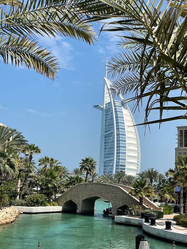 最先打卡帆船酒店,因外形酷似船帆,又称迪拜帆船酒店,位于阿联酋迪拜海湾,以金碧辉煌、奢华无比著称。酒店建在离沙滩岸边280米远的波斯湾内的人工岛上,仅由一条弯曲的道路连接陆地,酒店共有56层,321米高,里面的总统套房马桶,面盆,门把手等都镀有黄金,装修共用黄金40顿,洗漱用品都是爱马仕.