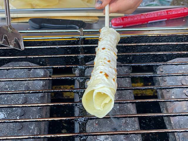 烤乳扇可以说还是比较香的 味道都快被我尝完了 有推车这种基本小的5元左右还大,古城里面7元还很小 味道一般
