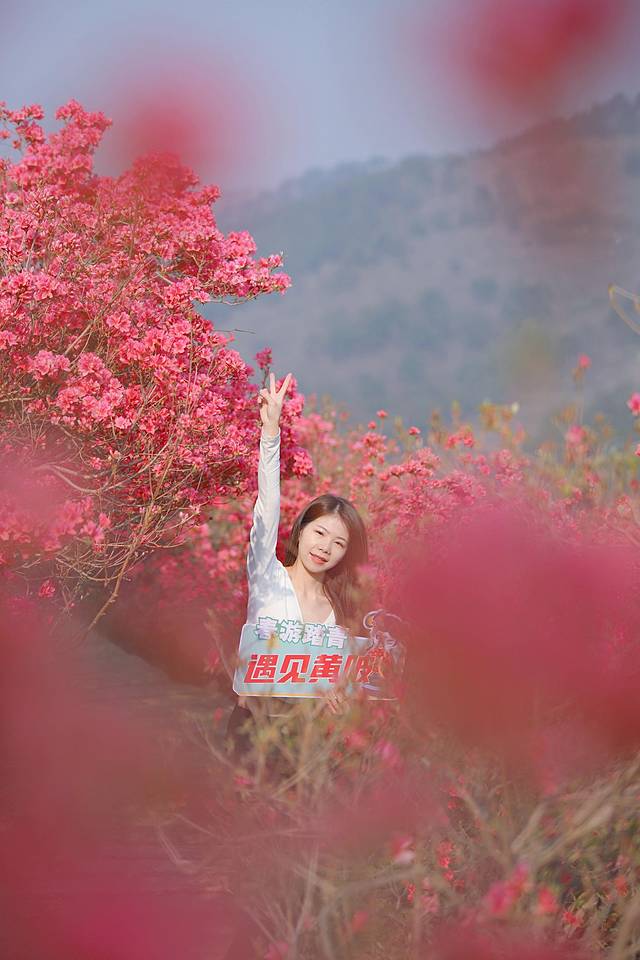 步入景区检票以后很快就坐上了景区的摆渡车,当摆渡车行驶在蜿蜒曲折的盘山公路上,吹拂着山间的凉风,放望去火红的杜鹃花连绵成片铺满山头。那种壮丽与绚烂所带来的震撼感,简直不能用语言来形容它的美丽。