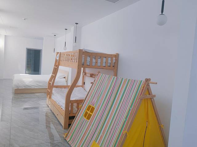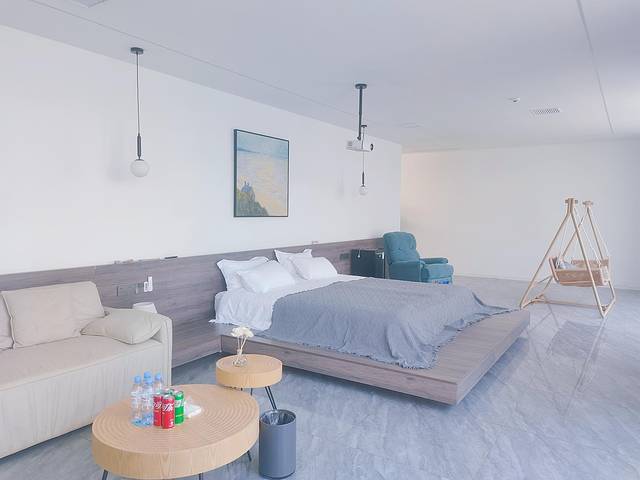 民宿的房间也很有特色,诸如全湖景露台房、榻榻米房等等,再搭配上精致的极简轻奢装修风格以及高品质的家电。