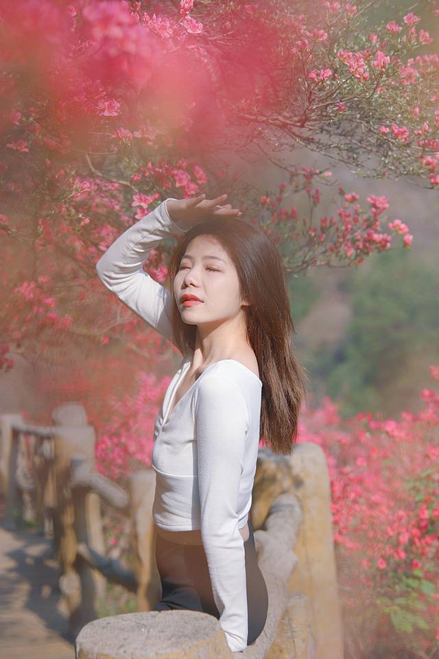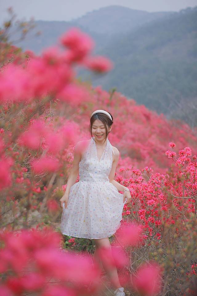 同行的朋友看到眼前的美景很快就四散而去,各自寻觅各自发现自己眼中的美景。而雄鹰沿着山间的步道缓缓漫步,沿途盛开着的杜鹃花美极了。