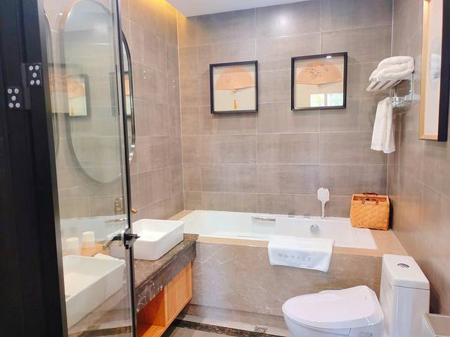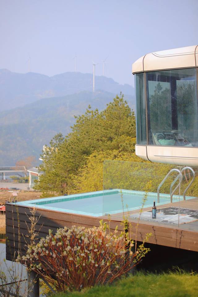 让我感慨的是,民宿里面还有很多让人眼前一亮的景观,比如说网红湖景泳池、270°全景落地窗、甚至民宿房间里面室内私人专属泳池。