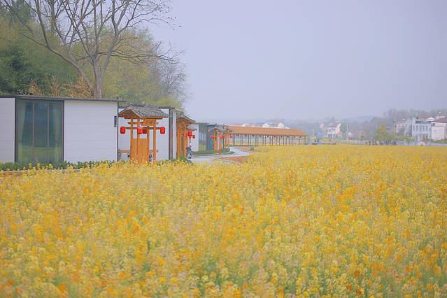 下了游船坐在湖边的凉亭旁喝点茶水,吹一吹清凉的湖风,接下来不妨到民宿旁的花海欣赏一番。走在乡间的小路上,一侧就是一望无际的绝美花海。