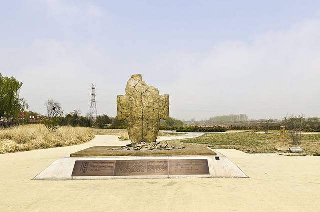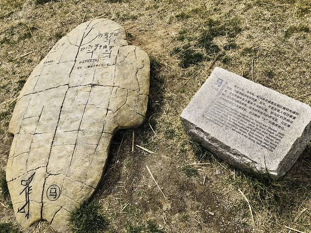 言归正传,一路向景区走,接近入口时开始有一些遗址了,举目望去好大一片荒芫,真是体现了遗址景区的特点,但如此30多平方公里的大景区全靠双腿呀。不说这些了,还是认真来看看3000年前商人生活的地方,我国有文字的历史开始的地方吧,看看景区都是如何介绍给我们的。