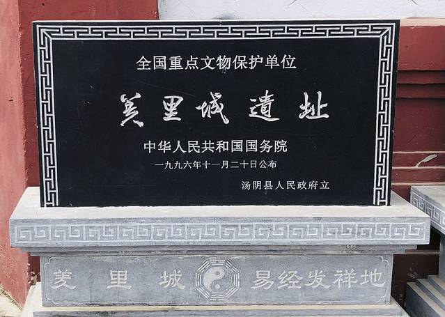 羑里城属于新石器时代、商、周遗址,是3000年前殷纣王关押周文王姬昌7年之处,是有史可据、有址可考的中国历史上第一座监狱。也是周易文化发祥地,是文王据伏羲八卦推演出64卦384爻,即“文王拘而演《周易》 ”之圣地。有厚7米的文化层断面,依稀可见远古时期人们居住、生活的情景。又称文王庙,国家重点文物保护单位。