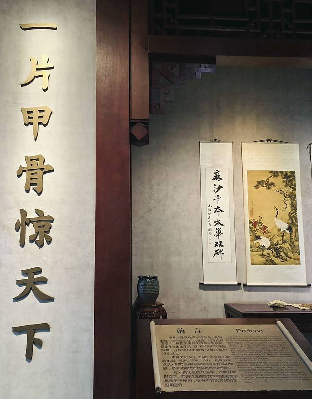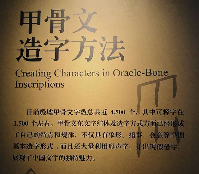 “甲骨纪事”部分展示的是商周甲骨、商王占卜的场景、甲骨文造字规则等。这些内容与殷墟博物馆有所类同。