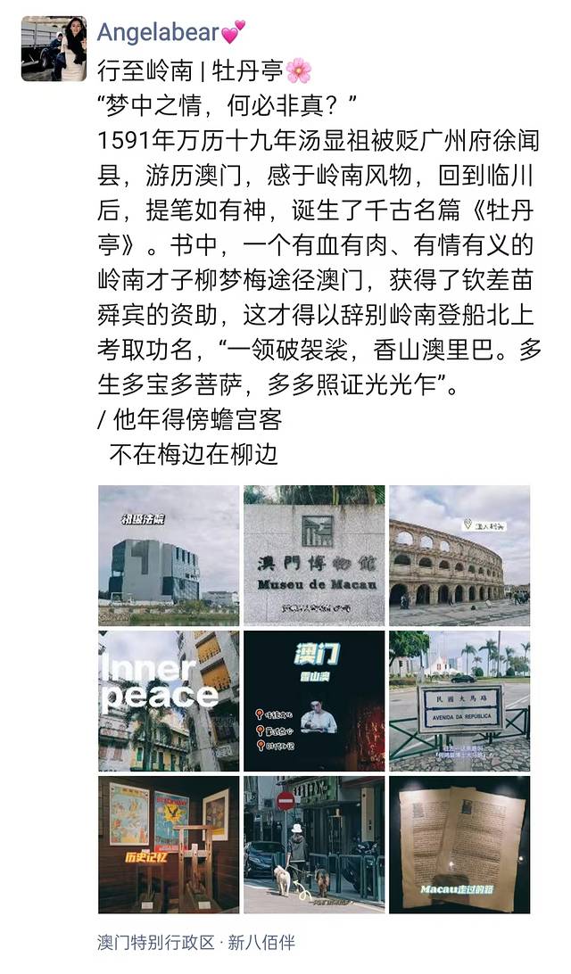 当年汤显祖被贬,而后愤然辞官回家,才有了千古名著《牡丹亭》,而世界这么大,总有突破口让你容光焕发。澳门,开阔了汤显祖的眼界,也开阔了我的。