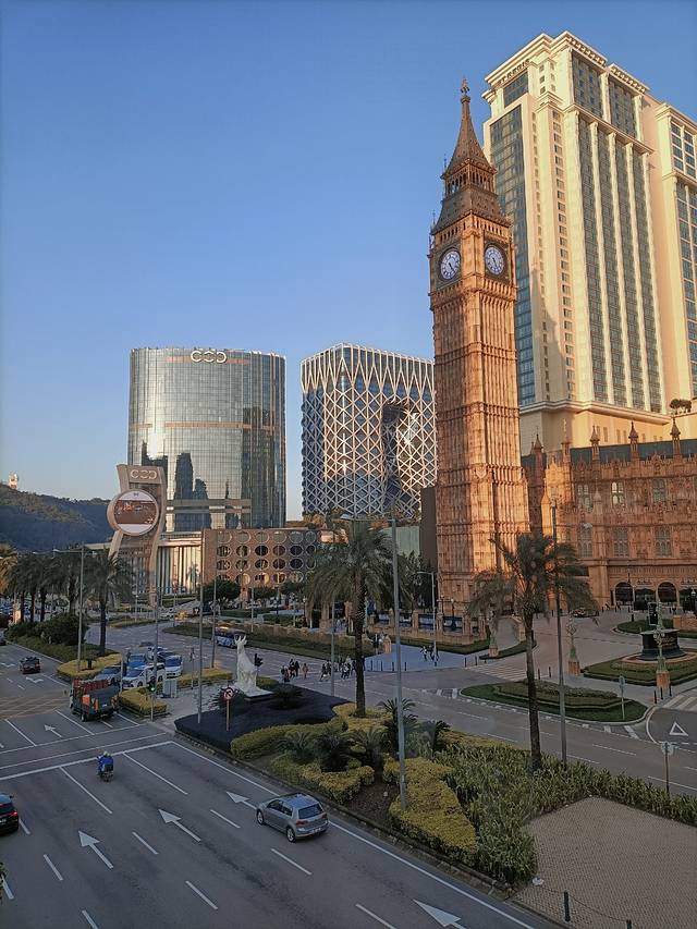 氹仔岛:官也街、澳门巴黎人、澳门伦敦人、澳门威尼斯人、永利皇宫
