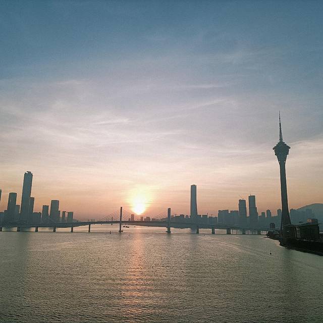 乘坐公交车离开氹仔岛回到澳门半岛,一路上又望见了美丽的夕阳,它像火一样照射着海平面,多想一切时间都静止,也多舍不得澳门这座城。
